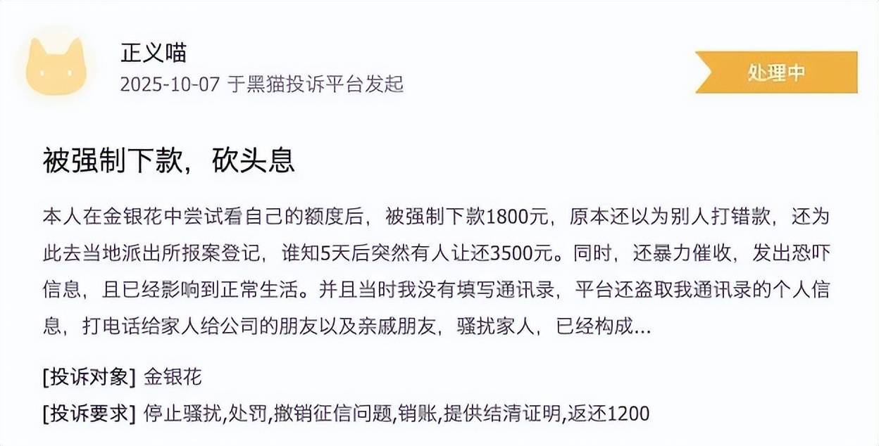 1560元5天还3000 金银花强制下款被指黑网贷:投诉暴增数百