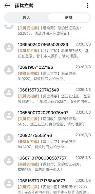 小林称,自己只收到1000元,因此这次到了还款日只还款了1000元。但此后金银花平台的催收人员仍对其进行了疯狂催收。“我的手机一天会收到几十上百条骚扰短信,都是各个平台的注册登录验证码。他们还对我的亲属进行了电话骚扰。”小林表示,这样的短信轰炸催收基本上每半个月就经历进行一次,金银花的行为已对其生活造成严重影响。