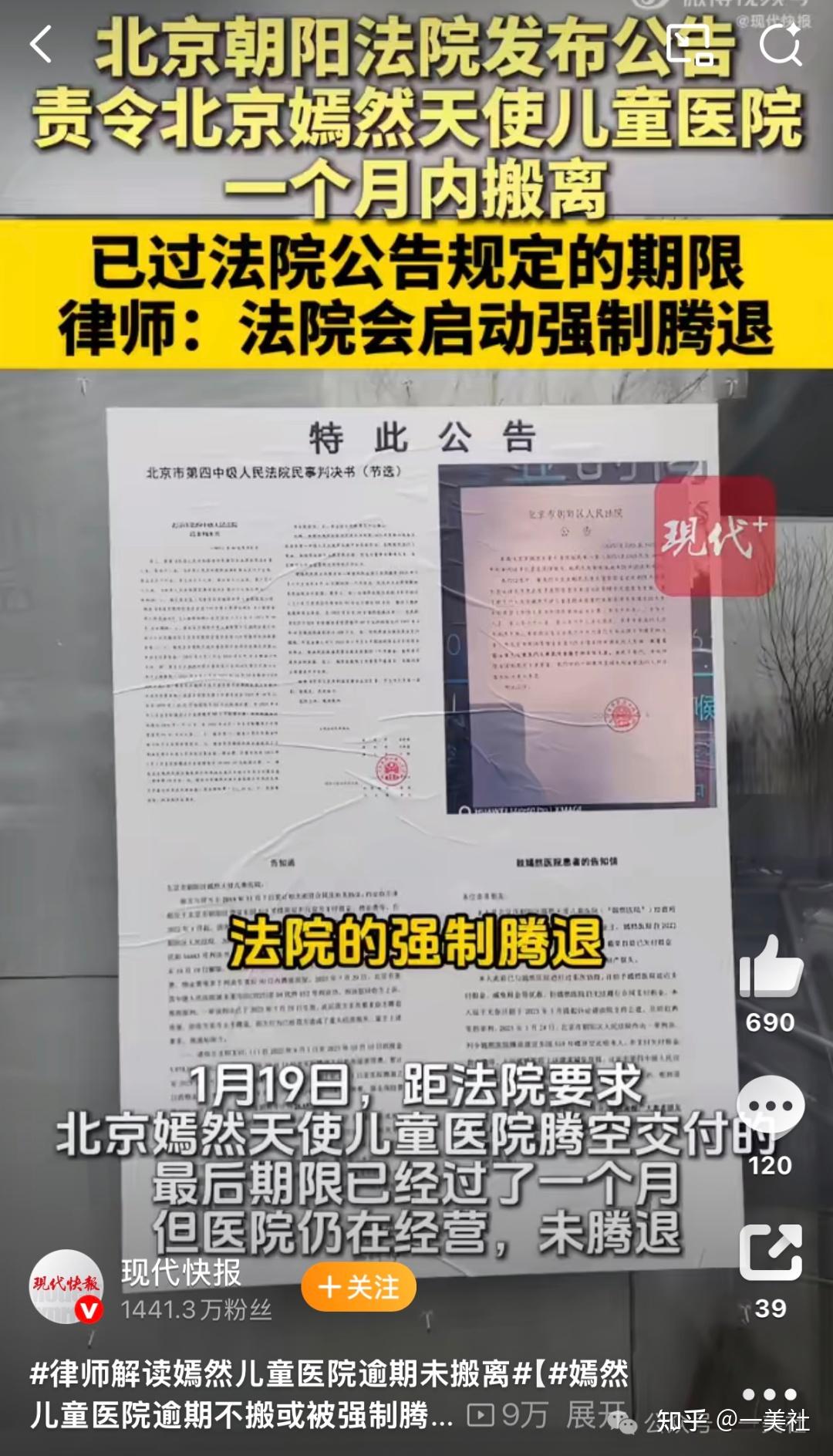 2025年3月,北京市朝阳区人民法院一审判决医院败诉,需腾退房屋并支付欠款等共计约2600万元,李亚鹏对其中270万元承担连带责任。2025年11月,法院的强制腾退公告贴上门楣,给嫣然医院最后30天期限。