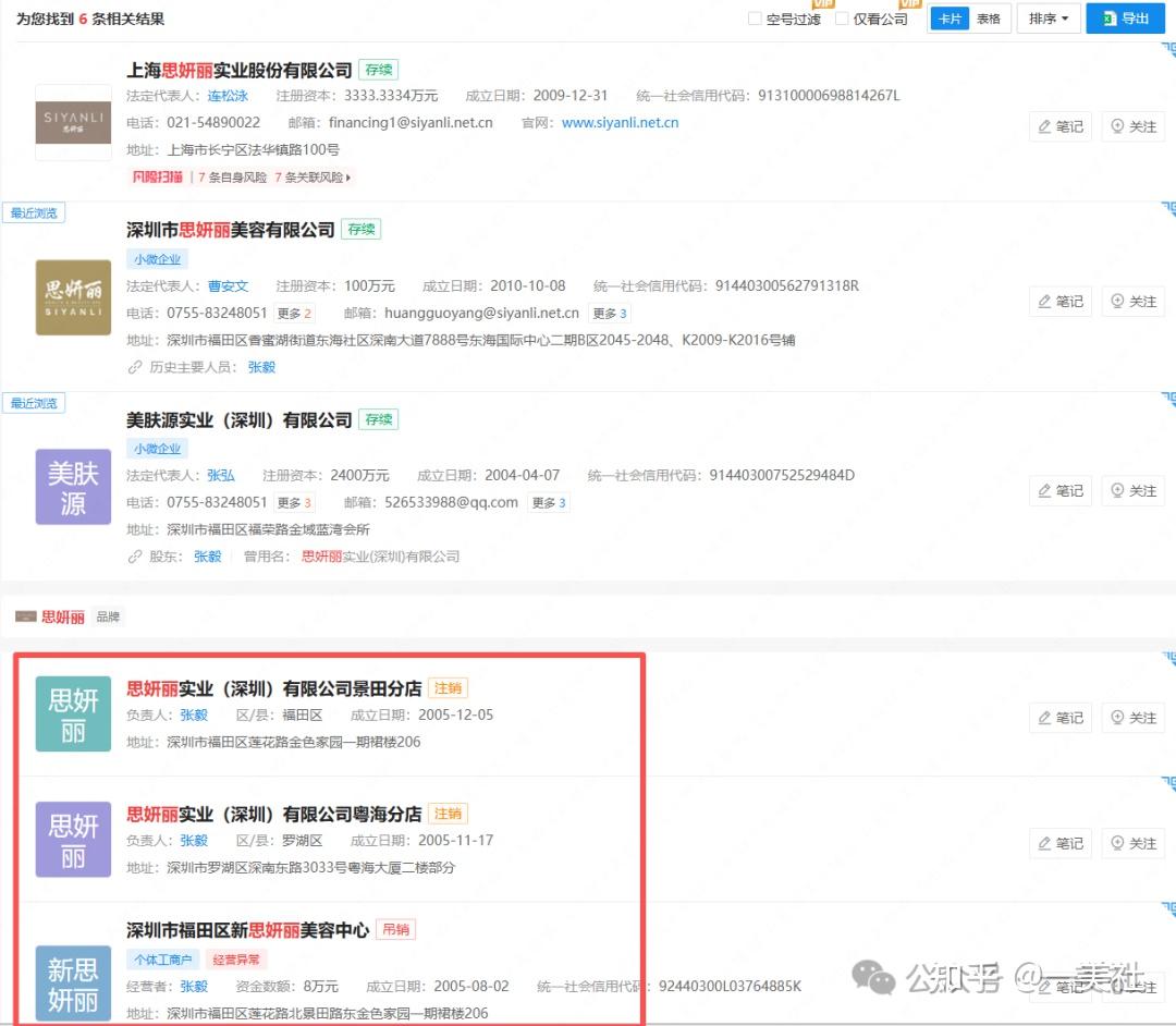 企查查显示,有三家负责人为张毅的“思妍丽”处于注销或吊销状态。