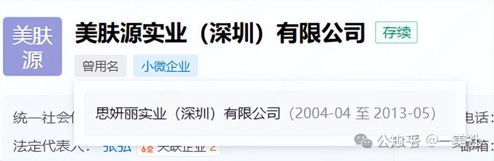 美肤源实业(深圳)有限公司(曾用名思妍丽实业深圳有限公司,2013年更名),注册资本2400万元,法人为张弘,张毅为100%持股股东,目前该机构主营业务包括体育场馆及健身服务、文化艺术培训、足浴服务,以及工艺品、鲜花等商品的综合零售及进出口业务。