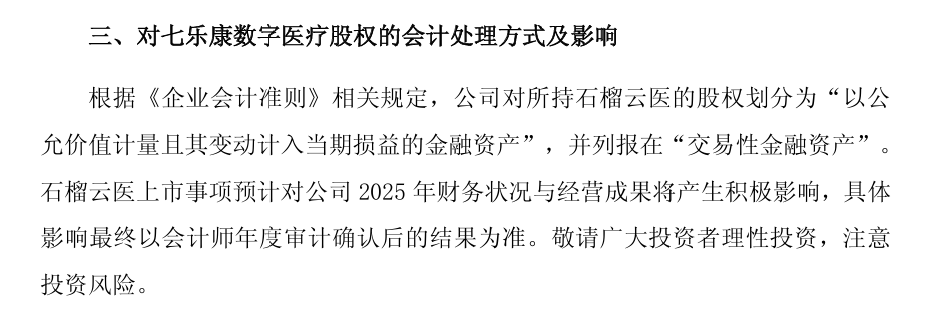值得一提的是,步长制药曾经于2025年10月13日发布公告表示:石榴云医上市事项预计将对公司2025年财务状况与经营成果产生积极影响。