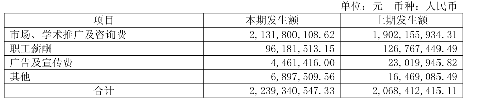 2025年半年度财报显示,步长制药市场、学术推广及咨询费为21.32亿元,占总销售费用的95.2%,如此高的占比,不免让人产生“带金销售”的联想。