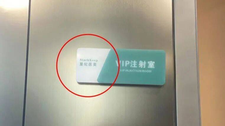记者在星纪的大厅、楼梯间等处,也并没有看到其它机构的标识。二楼的VIP注射室外,也尽数是星纪医美的logo。