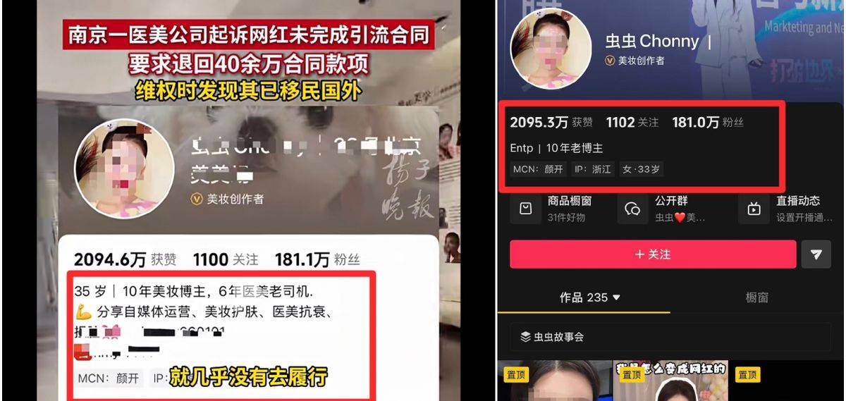 11月27日,扬子晚报官方公众号发布的视频中提到,南京一医美公司起诉网红未完成引流合同,要求退回40余万合同款项,维权时发现其已移民国外。