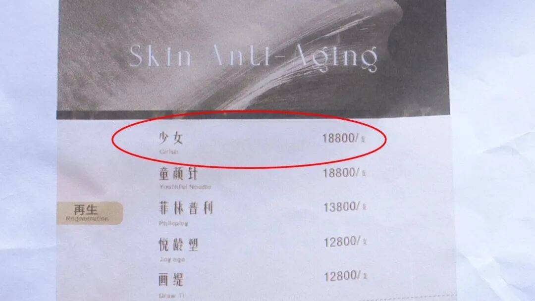 对此,李女士还是有很多质疑,她拿到手的皮肤治疗通知单上,只显示了注射剂的位置:太阳穴、发际线、耳前韧带、鼻头等,但购买项目“少女针”的材料成分,却并没有详细说明。