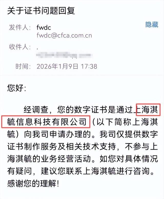 针对这一疑问,大众日报记者以用户身份致电中金金融认证中心有限公司,询问同一签名主体在同一机构是否同期只能持有一个签名。经反复确认,该公司客服组相关负责人于1月16日回应称,涉事电子签名可同时认证多个电子签名。随后记者联系度小满平台,工作人员解释,为李先生申请电子签名时,发现中金公司系统内已有其在有效期内的电子签名,便直接进行了调用。