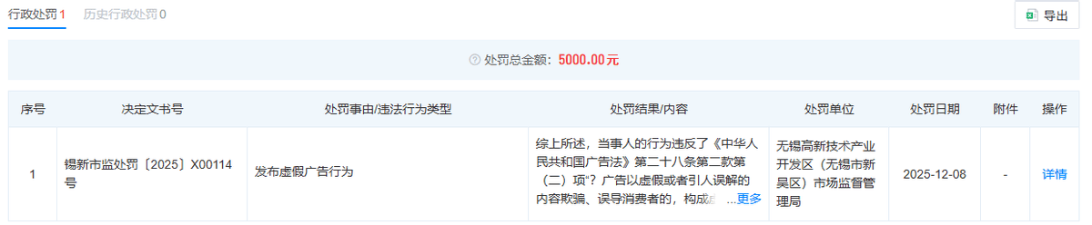 最近一次处罚发生在2025年底:相关店铺在快手、微信视频号、天猫等平台,对青少年平衡祛痘精华液、唇周霜、防晒乳等多款产品进行疑似虚假宣传,包括普通化妆品谎称孕妇可用、面霜宣称“根源修护” 却无依据等。据此,监管部门认定其行为违反《中华人民共和国广告法》,责令改正并罚款5000元。案发后,该企业表示相关宣传已完成整改。