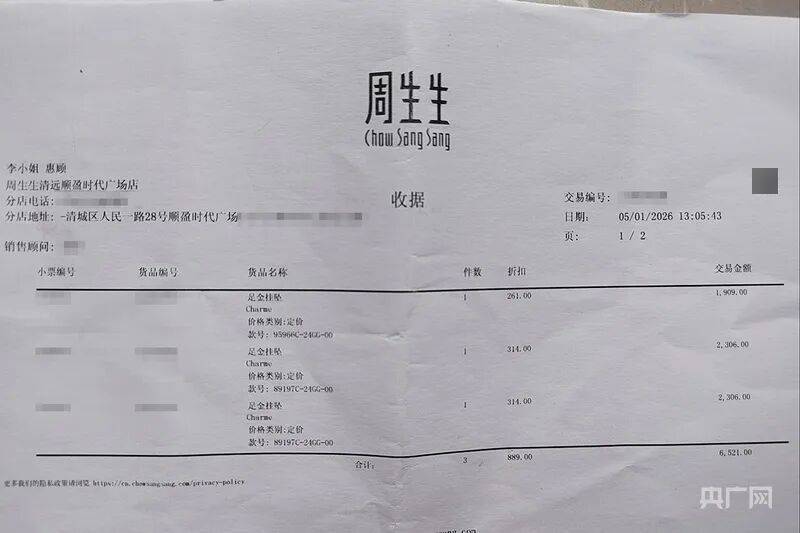 “我是今年1月5日在广东省清远市清城区远盈时代广场的周生生店购买的首饰,当时想着品牌大,品质有保障,没想到会出现这种问题。”李女士回忆说。