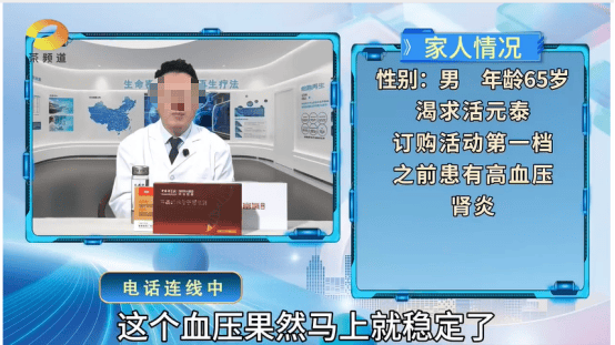 电话连线造势:多位观众轮番致电直播间求购,河南一位 65 岁老人称 “此前服用过活元泰,血压显著降低、很快稳定”。