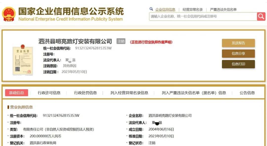 此外,据国家企业信用信息公示系统显示,泗洪城投集团旗下数十家子公司中,目前已有泗洪县明亮路灯安装有限公司、泗洪县永泰建筑业咨询服务有限公司、泗洪县城乡规划设计院有限公司、泗洪宏通农牧科技有限公司、泗洪县农村康居工程投资有限公司五家子公司处于注销状态。