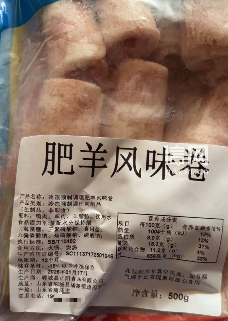 针对此事,肉制品行业从业者刘先生指出,从行业定义、配料标准到命名规范,涉事商家的宣传均存在明显违规:“首先,原切肉的核心是单一肉类直接切割,无其他肉类、添加剂混合;而调理肉是经腌制、配比混合等工艺制成的复合肉制品,两者品类完全不同,调理肉本身不存在‘原切’概念。其次,‘精品肥羊卷’命名有明确行业共识——需以羊肉为主要原料,纯羊肉含量通常不低于90%,配料表首位必须是羊肉;而该产品配料表首位是鸭肉,本质是‘以鸭肉为基底的风味合成肉’,羊肉仅为辅助调味成分,根本不具备‘羊肉卷’的核心原料属性。再者,‘精品’二字对应产品品质等级,要求原料新鲜度、切割工艺、口感风味均达到行业优质标准;而含鸭肉的调理肉在原料纯度、营养价值上与纯羊肉卷差距显著,冠以‘精品’属于夸大品质、误导消费。”