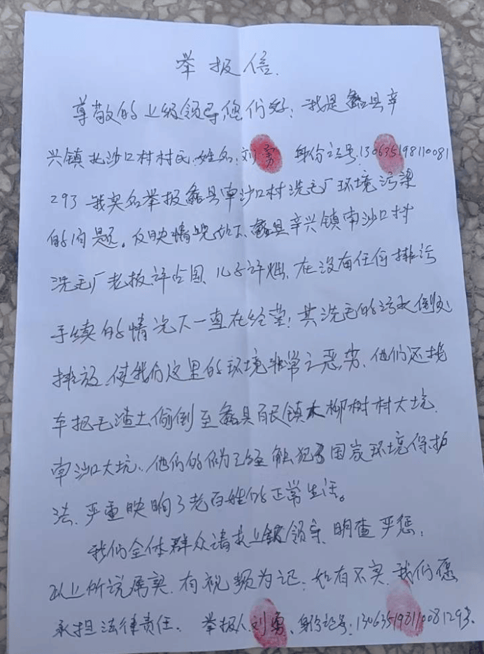 近日有群众反映,蠡县辛兴镇沙口洗毛厂存在多项环境违法行为,不仅未取得排污手续却长期违法经营,其负责人许某及其父亲许某国还雇车将生产过程中产生的毛渣土,偷偷倾倒至蠡县百尺镇大柳树村大坑、辛兴镇沙口村大坑等地,对当地生态环境造成不良影响。