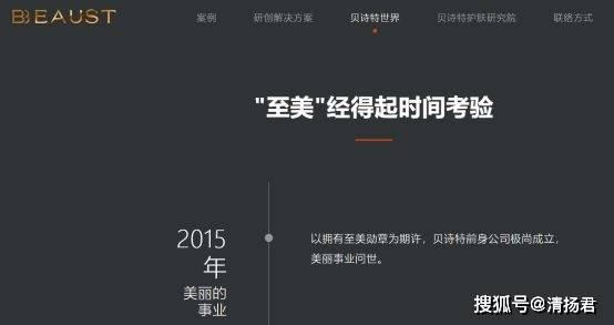 值得说明的是,广东贝诗特生物科技有限公司官网宣传“‘至美’经得起时间考验”、“2015年,以拥有至美勋章为期许,贝诗特前身公司极尚成立,美丽事业问世。”