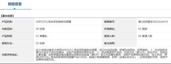 查询发现,备案编号为“粤G妆网备字2022226419”的极尚安肌焕肤祛痘霜,在药监局官网的备案功效为“祛痘”,并未对“修护”“舒缓”“温和不刺激”等功效,及“96%温和不刺激、81%减少痘痘、痘痘红区下降34%、减少出油67%”的功效数据进行备案。该行为已经构成了虚假宣传,同时“解决痘菌”的宣传还涉嫌宣传医疗作用。