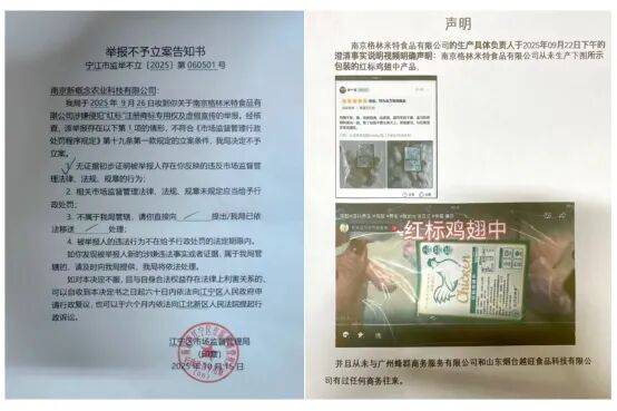 广州海珠区一纸立案告知书引起媒体关注。2024年12月23日,远方好物作出官方声明称:报道提及的“红标鸡”产品均由平台入驻商家“越旺公司”提供,是南京新概念公司与“越旺公司”宣传素材授权事宜的纠纷。在纠纷结束前,平台先行对已购买相关产品的消费者主动办理退款。“对于越旺公司使用未获得完整宣传素材授权的行为,根据平台规则进行 100万处罚。”