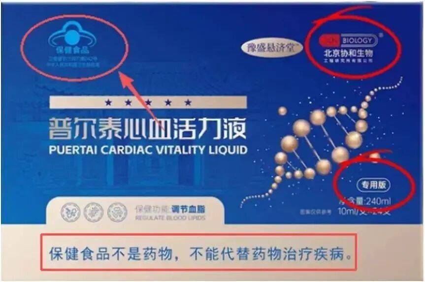 经查实,所谓“协和心血活力液”实为“普尔泰心血活力液”,仅是拥有“蓝帽”标识的普通保健食品。
