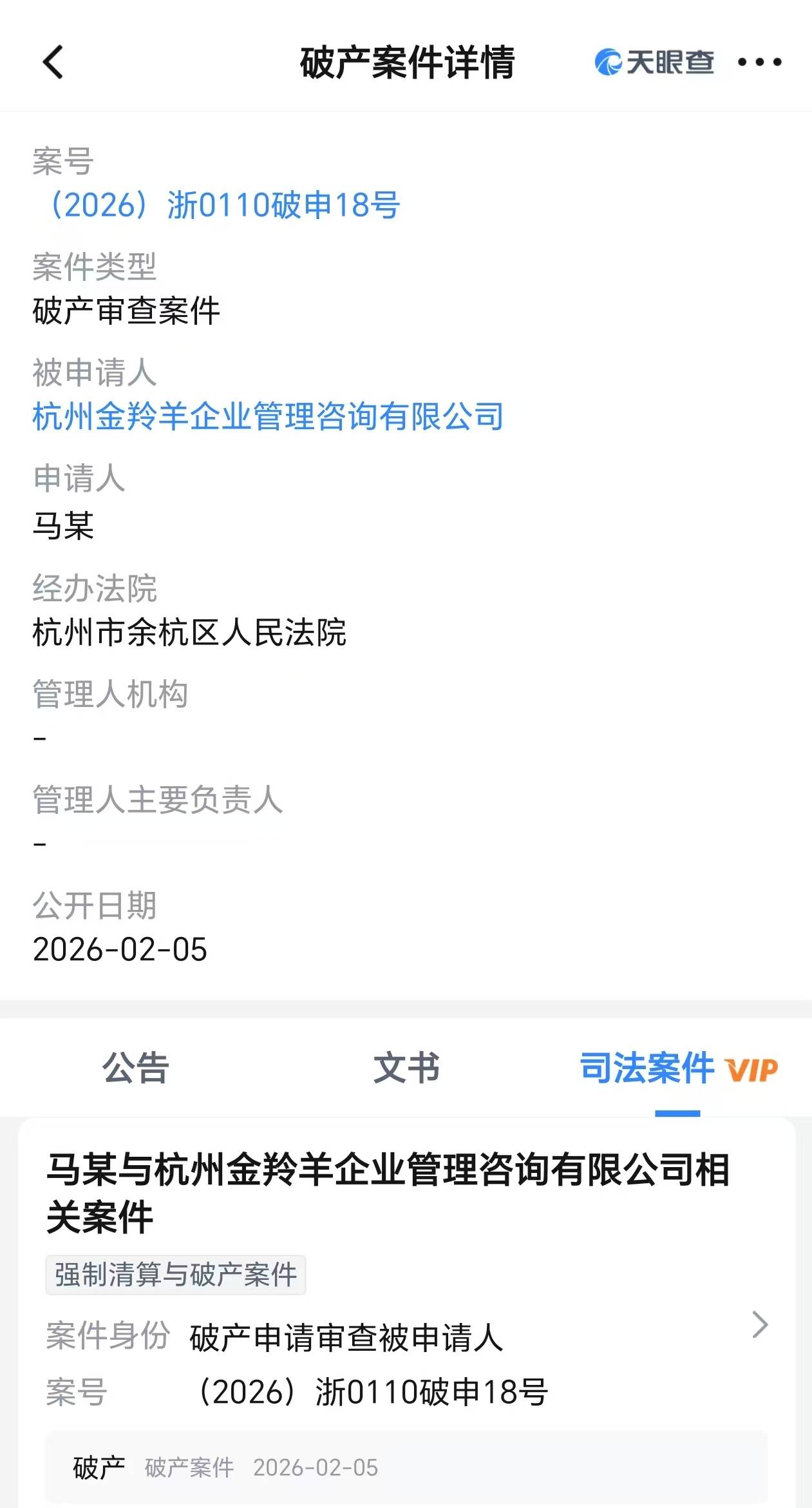 2月6日,界面新闻从天眼查APP获悉,近日,自嗨锅关联公司杭州金羚羊企业管理咨询有限公司(下称杭州金羚羊)新增一则破产审查案件,申请人为马某,经办法院为杭州市余杭区人民法院。