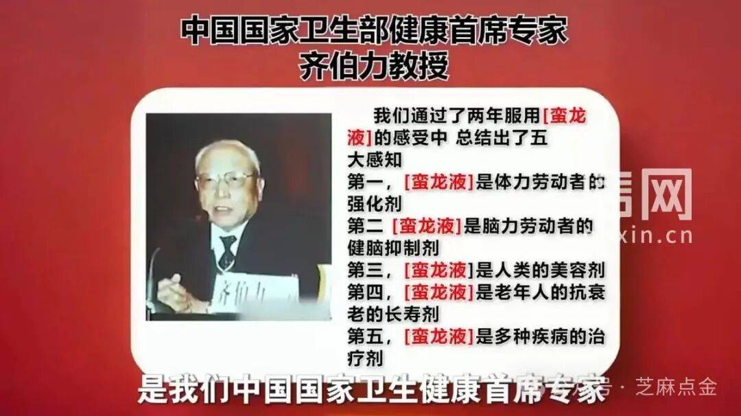 这些节目中被塑造成“国家执业医师”、“副院长”、“御医传人”的所谓专家们,将蛮龙液的功效夸大到令人咋舌的程度。