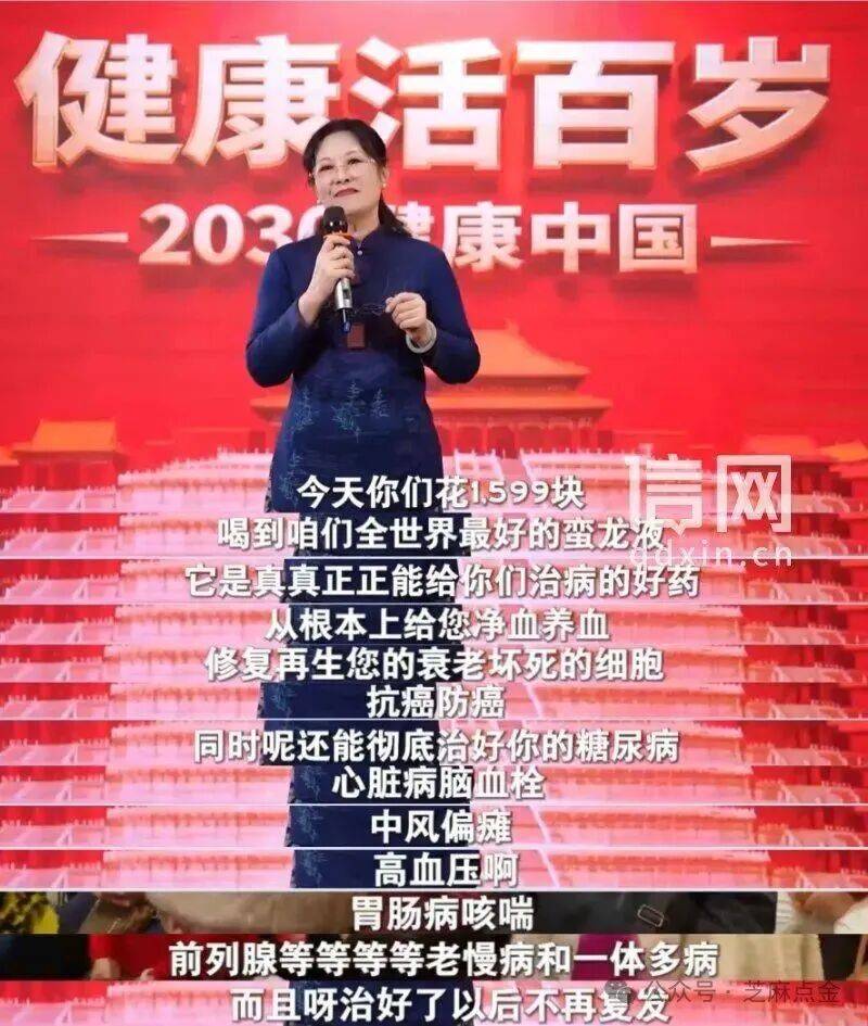 然而,在这档自制的“健康讲座”中,它却被包装成能“防癌治癌”、“治疗老年痴呆、高血压、糖尿病”、“修复断裂神经元”的“万能神药”。