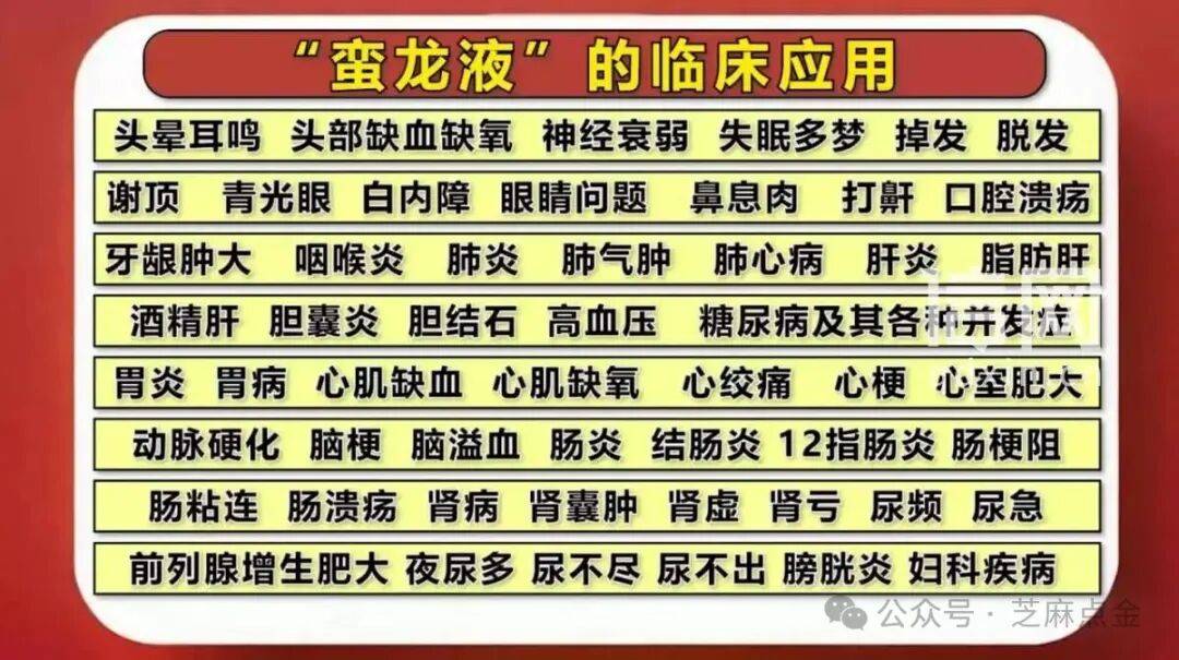 节目中列出“蛮龙液”的临床应用。(来源:受访者)