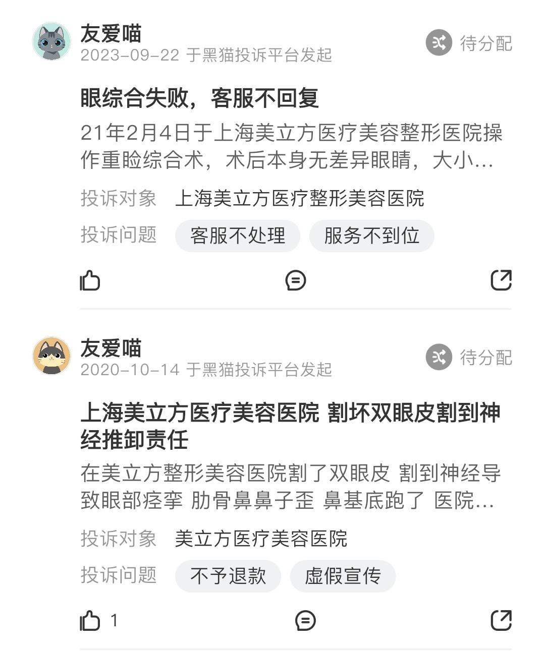 深度美业注意到,在黑猫投诉平台,还有多起消费者纠纷尚未得到处理,其中也包括部分消费者投诉的手术失败纠纷。