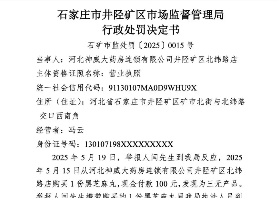 2月18日,石家庄市监局的一纸罚单,揭开了这家知名药品连锁企业的“另一面”:因在药店内现场生产、销售黑芝麻丸,神威药房被认定无证生产食品,罚款65000元。