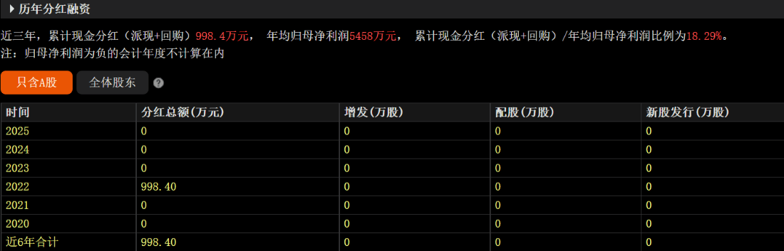 从2019年至2024年的6年时间里,嘉麟杰仅分红988.40万元。