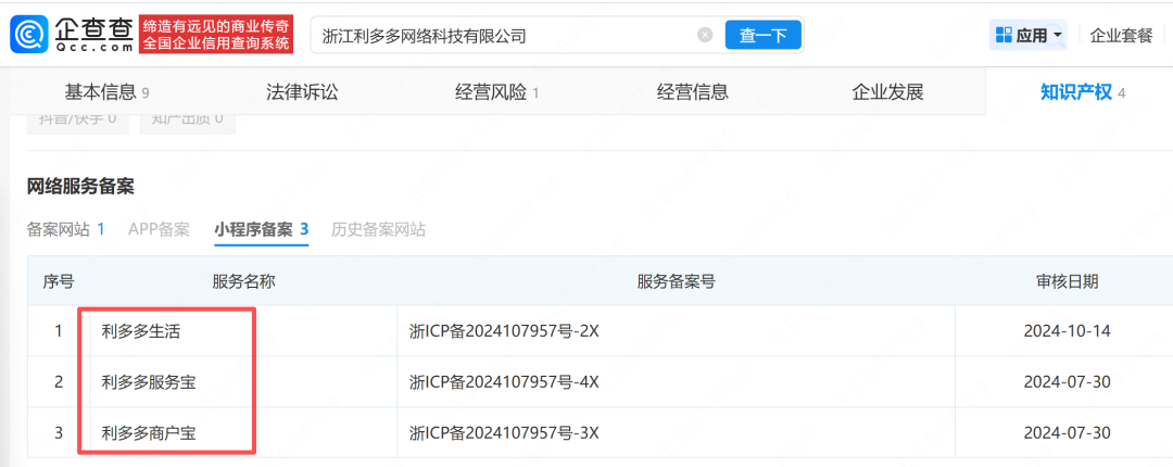 其中,利多多公司已于2025年3月26日被注销,但可以发现利多多此前备案了生活、服务宝等软件,疑似开展商城、助贷等业务。