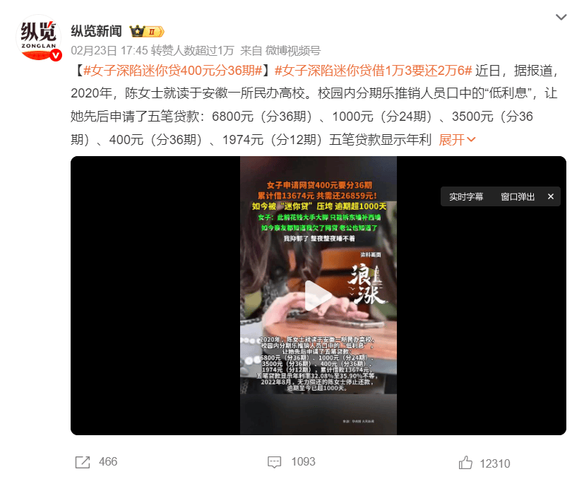 近日,分期乐因“女子深陷迷你贷400元分36期”、“女子深陷迷你贷借1万3要还2万6”的话题引发关注。