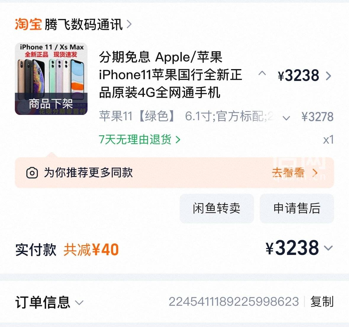 近日,宁波的唐先生向信号新闻反映,他四年多前在淘宝“腾飞数码通讯”店铺购买的标注“全新国行原装”的iPhone 11手机,最近在换机出售时被检测为“美版扩容机”,且主板曾被拆解维修,导致手机残值缩水了200多元。因涉事店铺已关闭,唐先生联系了淘宝平台,客服表示现有证据不足以证明手机与商家宣传不符,且店铺关闭后,后续维权难度极大。