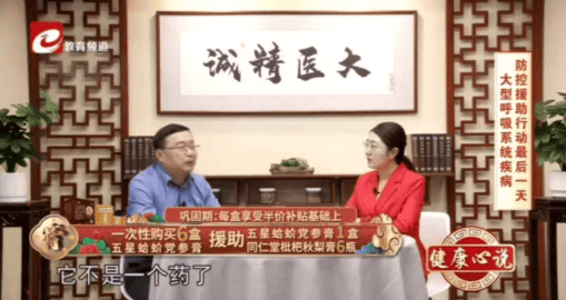 在《健康心说》直播中,孙鹏把一款普通中成药吹成包治肺病的神药。蛤蚧党参膏是正规中成药,但功能主治明确限定为辅助治疗,仅能缓解虚劳喘咳、体倦乏力等症状,绝无根治慢阻肺、肺心病等严重疾病的效果。可在孙鹏口中,辅助变主治、缓解变根治,普通药品被夸大到无所不能,严重违背药品广告法规。