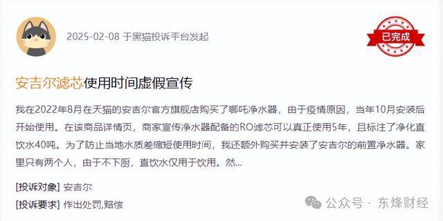 如今,安吉尔已经深陷信任危机之中。天眼查App显示,在黑猫投诉平台上,关于安吉尔的投诉已经超过830条,涉及产品质量、售后服务、滤芯争议等多个方面。这些投诉不仅是对安吉尔品牌形象的巨大打击,更是对其未来发展的严峻挑战。