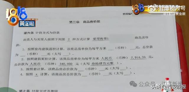 汪女士说,在抵达威海后,她们在大拇指广场游玩不到1小时就去了爱琴海景房售楼部,在那里,销售人员一个劲劝我买房,汪女士最终交了9万元定金购买了爱琴海景1号16层的一套房子,建筑面积将近43平方米,总价34万元,单价每平7914元,开发商是威海鼎泰房地产开发有限公司。