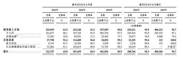据量化派披露,2024年及截至2025年前5个月,量化派毛利率达到96.9%、96.7%,其中,羊小咩商城毛利率分别为97.5%、97.1%。