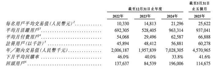 “羊小咩商城作为量化派控股有限公司旗下核心电商平台,自2020年11月起涵盖各类零售商品,已成为量化派的营收支柱。”据量化派(02685.HK)披露,截至2025年5月31日,羊小咩贡献了量化派98.1%的收入。2024年及2025年前5个月,羊小咩的平均月活跃用户分别为96万及93万。