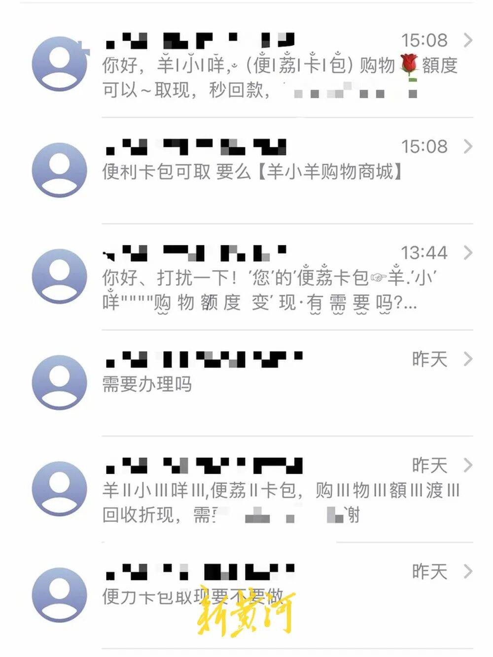 值得注意的是,量化派曾公开回应称,公司从未与任何第三方回收平台或商户开展回收合作,市场上相关行为均为第三方非法冒用,但记者发现,不少投诉者在注册羊小咩或使用便荔卡包后,会收到自称“羊小咩商户”的来电,询问是否需要套现,记者也在注册账号后频繁收到相关短信,询问是否需要在便荔卡包、羊小咩折现,用户信息泄露问题凸显。