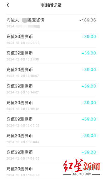 有着同样经历的还有真真(化名)。一开始,她因于对星座的兴趣下载了测测APP,2020年的某一天,测测向她推送了一张连麦达人优惠券,此后便“沉迷”了进去。到2025年下半年,真真已经在测测APP花费了近10万元。
