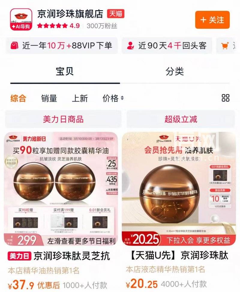 天猫“京润珍珠旗舰店”页面(来源:网络截图)