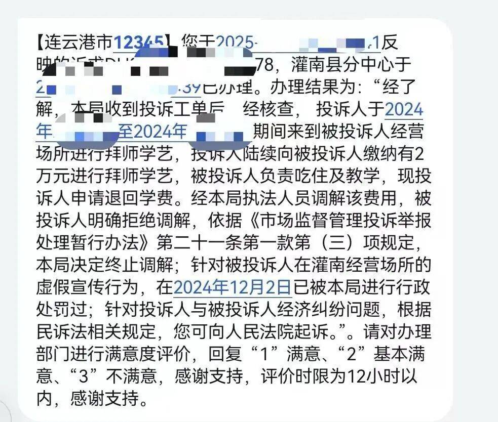 如今,喻某兵的连云港公司已被注销,汇珍堂平台也关门大吉。尽管当地市监局已认定其门头牌匾虚假宣传并罚款35万,文旅局也撤销了其非遗传承人资格,但对于那些缴纳了2万多元学费的学员来说,退款依然遥遥无期。