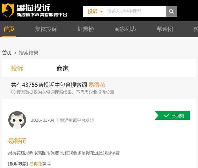 深圳商报读创客户端记者查询黑猫投诉平台发现,易得花平台共有43755条投诉中包含搜索词易得花。