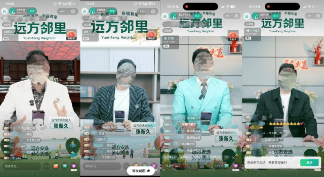 3月13日晚上同一时段,6个远方邻里直播间中有4个“张新久”在推销不同产品。