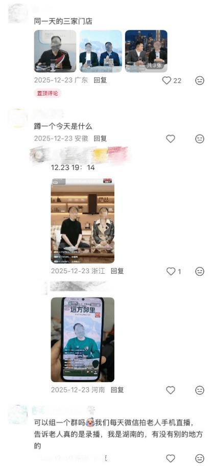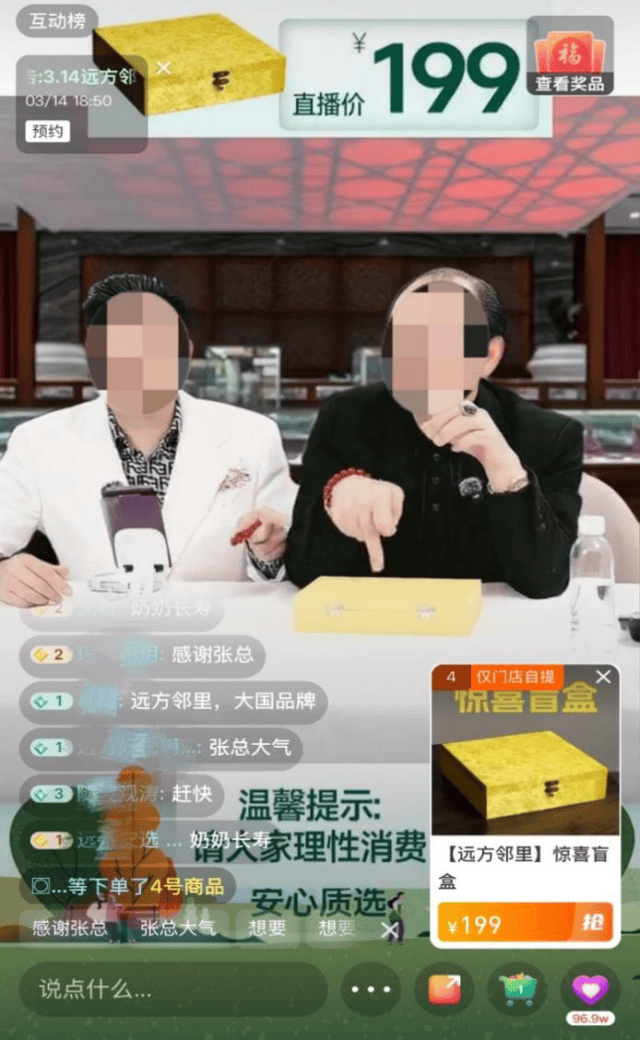 于女士奶奶的情况并非个案。在小红书、抖音等社交平台上,聚集了大量反映家中老人沉迷远方安选直播、过度消费的帖子。在“3·15国际消费者权益日”到来之际,记者走访多家广东线下门店,进入多个“远方安选”门店微信群,蹲点各微信群中链接的“远方邻里”直播间,试图拆解这一以“免费鸡蛋”为诱饵、以私域直播为阵地的“围猎”链条。