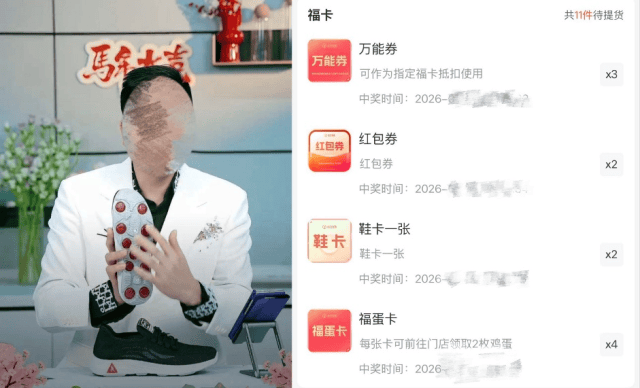 直播间不定时发放“福蛋卡”“鞋卡”“万能券”等,凭卡可到线下门店免费领取相应礼品。