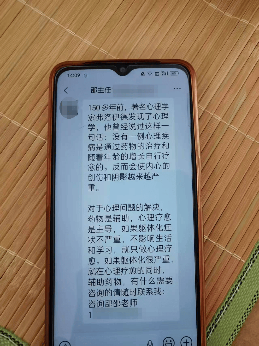 被问及是否有自闭症学生在此被治好时,她回应称:“有,治好过。”她解释,许多抑郁症、网瘾、社恐的孩子问题源于童年创伤,与孤独、缺乏安全感有关,根本上是缺少陪伴。国老师举例称,一名约24岁的自闭症患者在此待了三个月后,“进厂子上班去了”;另有一名大二学生,曾出现幻听产生幻觉等精神分裂症状,在其他地方花费大量精力治疗未果,在此三个月后“都好了,幻听幻觉没有了”,目前在当地从事物流分拣工作。此外,国老师向记者发送了一段聊天记录截图,称图中孩子为精神分裂症患者,此前曾在三所军事化学校就读并遭受老师殴打,目前正在其机构接受帮助。