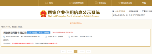 这份“失联”通报,与记者掌握的青保堂频繁变更记录形成鲜明反差。工商信息显示,青保堂成立至今变更记录多达40余次,现更名为“河北历日科技有限公司”,法人从孙春景变更为李东杨,股东从河北问答有课教育科技有限公司变为李东杨100%持股。就在2025年10月11日,市场监管部门上门核查无果后,这家“失联”企业又一次被列入异常名录。