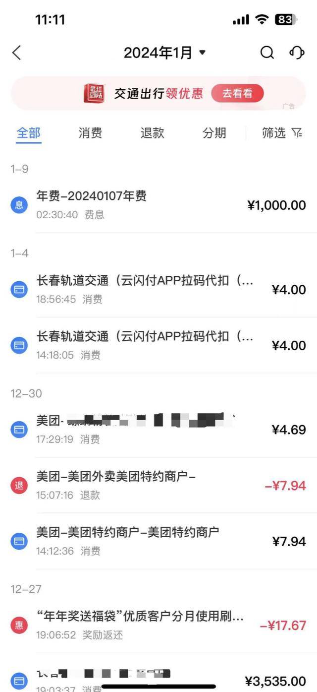 令李先生没想到的是,2025年12月,他在交通银行信用卡买单吧APP中核对历史账单时发现,每年竟有一笔1000元的年费扣款,至今已累计扣款达4000元,但他却从未收到过有关收取年费的通知。