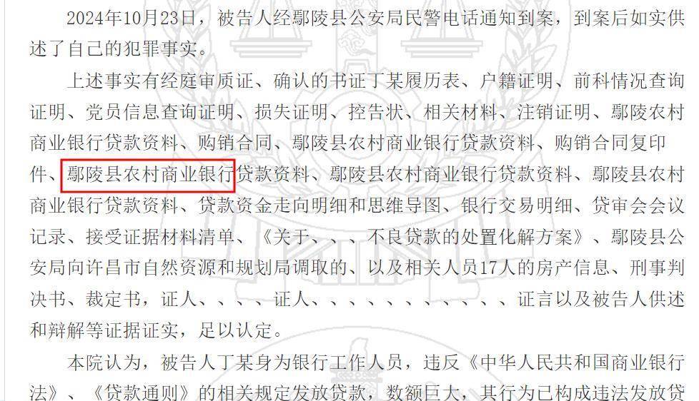 近日,河南省鄢陵县人民法院对原河南鄢陵农村商业银行股份有限公司(下称 鄢陵农商行)职工丁某违法发放贷款案作出一审判决。被告人丁某身为银行工作人员,违反《中华人民共和国商业银行法》《贷款通则》等相关规定发放贷款,数额巨大,被依法判处有期徒刑二年,缓刑二年,并处罚金人民币1万元。