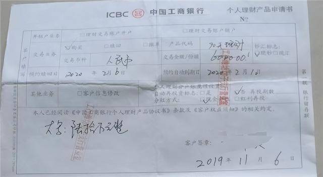 据工商银行潍坊分行工作人员辨认,客户所持《个人理财申请书》或《个人理财产品定投业务申请书》上列明的理财产品名称均非工商银行所有。