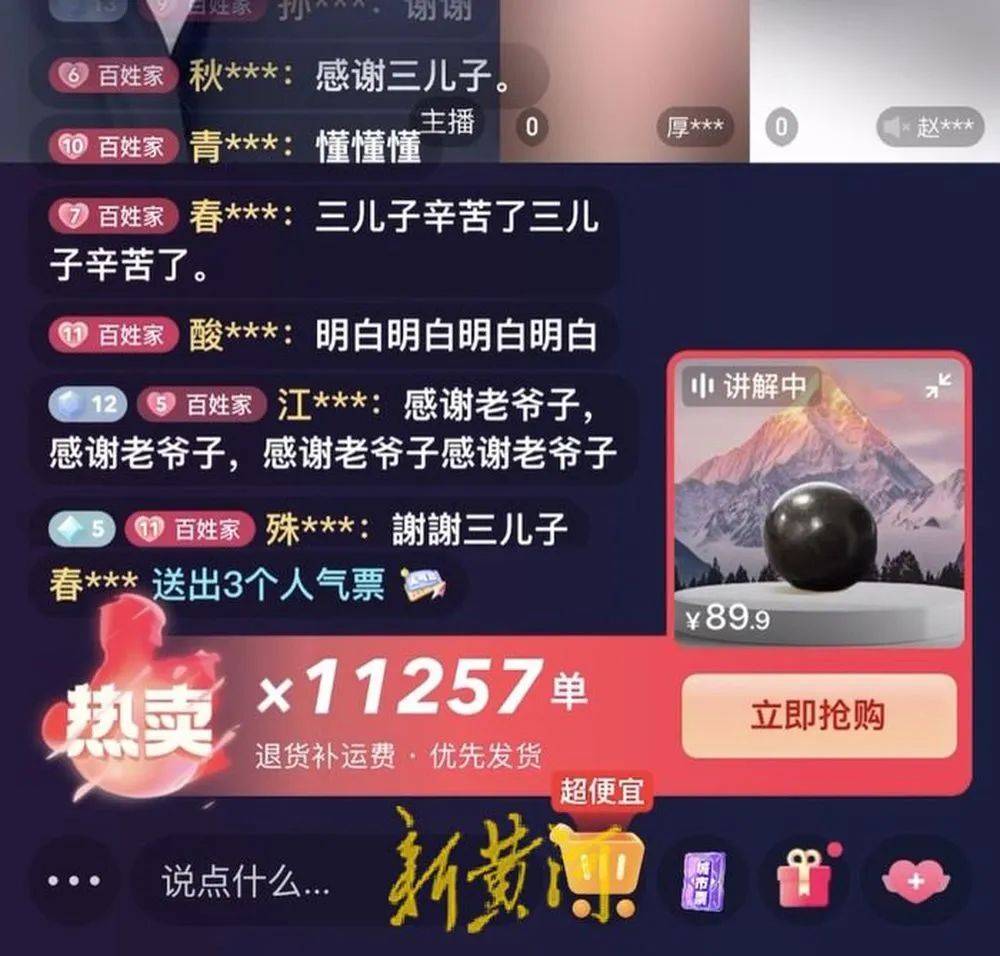 所有剧情最终会引向某个“物品”——高端、神秘、价值不菲……为了某种原因,不得不忍痛割爱低价卖给“爹妈们”。于是,一盒89.9元的“灵芝仙草人参”,瞬间卖出了过万单的成交量,“爹妈们”还不断表达着“感谢”和“加油”……